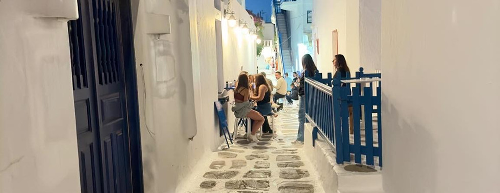 Our evening was spent in Mykonos town, we ate and explored the stunning little cobbled streets before finding a bar to chill in.