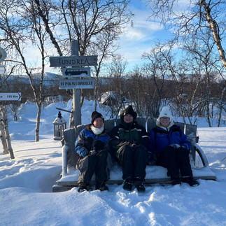 This afternoon we were taken out on the 3 Country borders snowmobile adventure, travelling across the frozen lakes to the border of Sweden, Norway & Finland! This lasted 3 hours and the country border was the half way point where you get a hot drink and can swop drivers and have some photos.